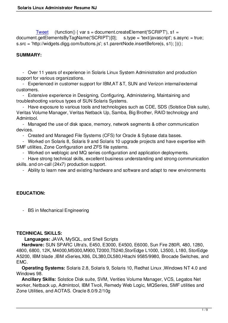 Linux Admin Resume